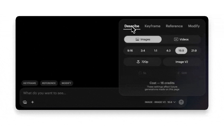 Once in Reference mode, select Image V2 as your working model, it currently defaults to Photon so make sure to change it to Image V2 before you start so you can use the latest model.