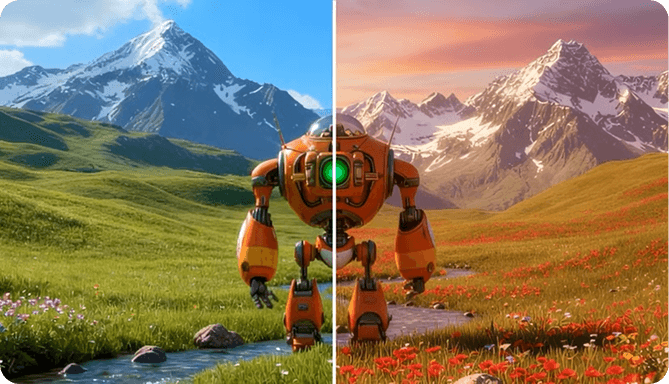 Direct the perfect shot with start/end frames. Extend any video or say “loop” to make it loop.