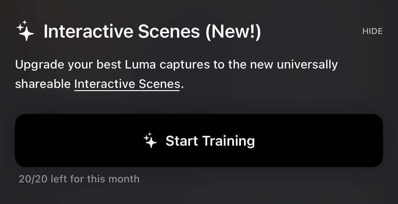 Upgrade to the latest interactive scenes in iOS, Android and Web, today! Using Luma means you're always at the forefront of 3D AI. Every time we make a breakthrough, all your captures and data comes along.