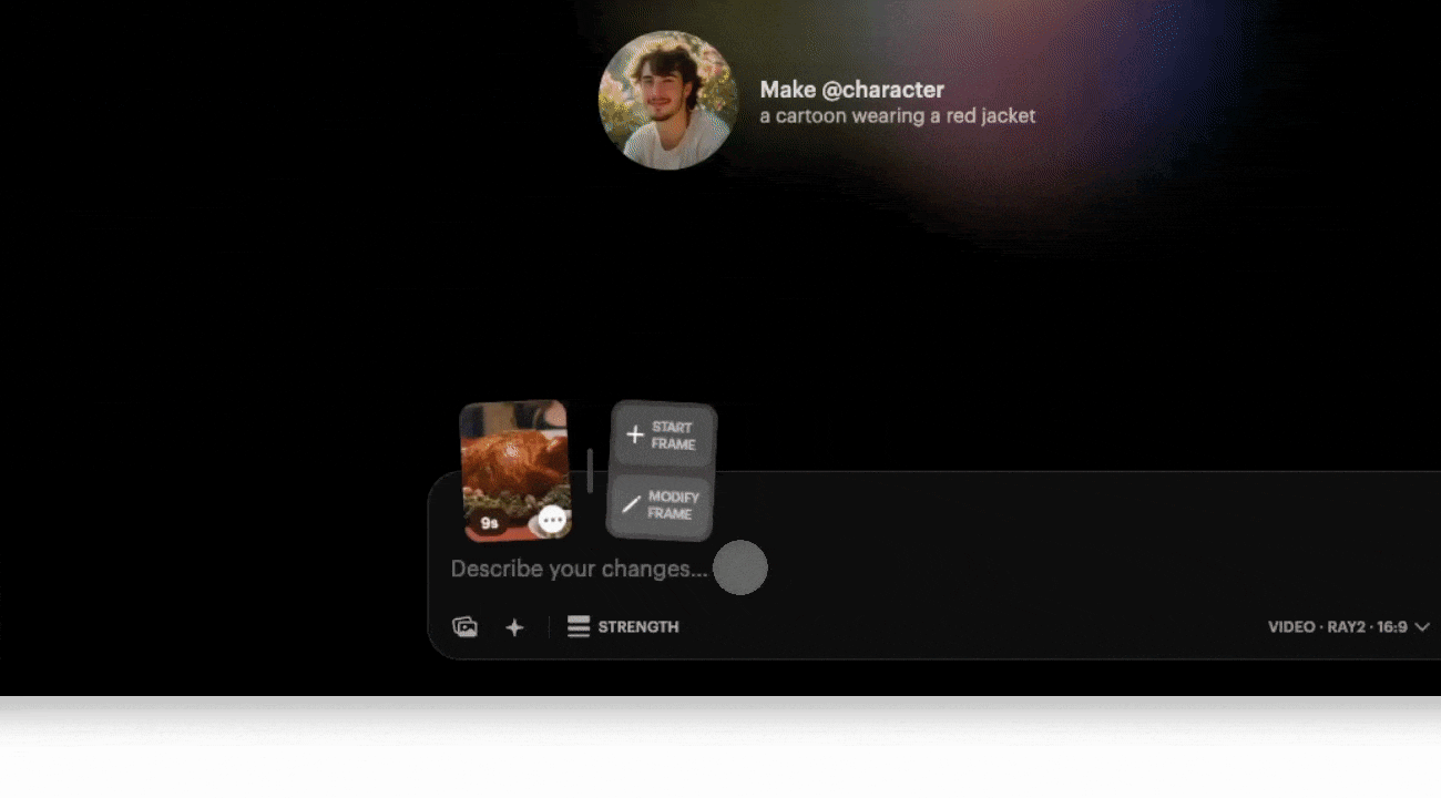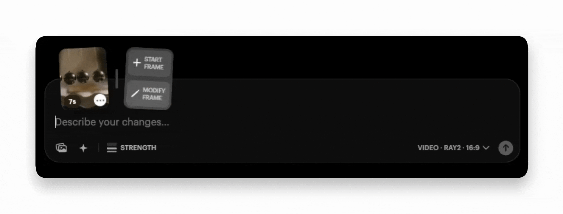 You can now edit your Start Frame natively without ever leaving Dream Machine, or make changes with other image editing tools and then upload it back into your composer window.