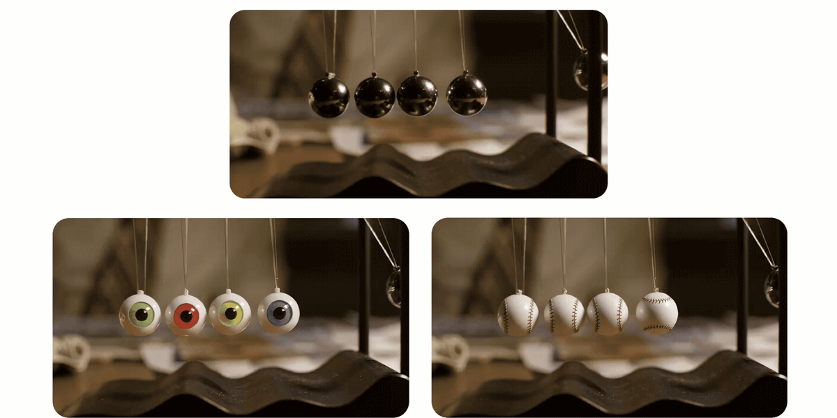 Put them together, and you get a prompt that reads something like: 'Change the spheres to different color eyeballs', or 'change the spheres to baseballs'