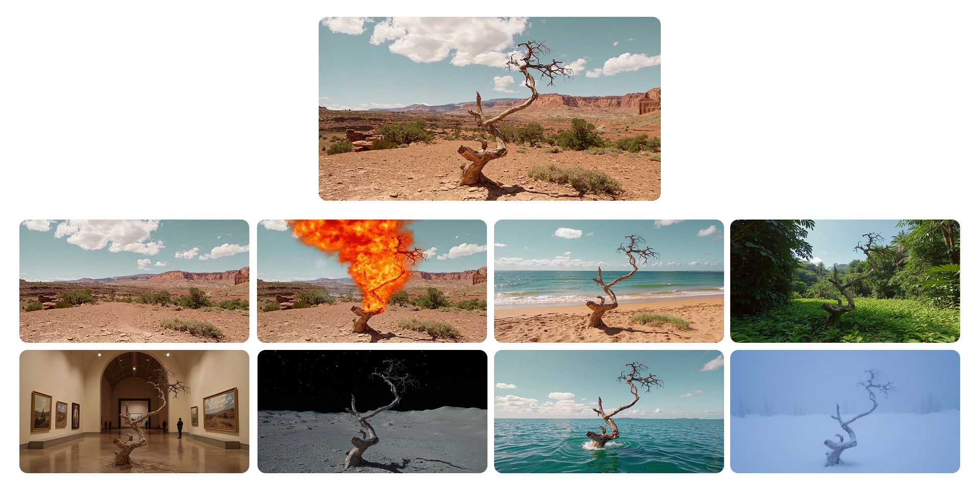 Edit the style, subject, or specific elements of your video by editing or replacing the original Start Frame, and then using it as the new driving visual to transform your original input video into something new