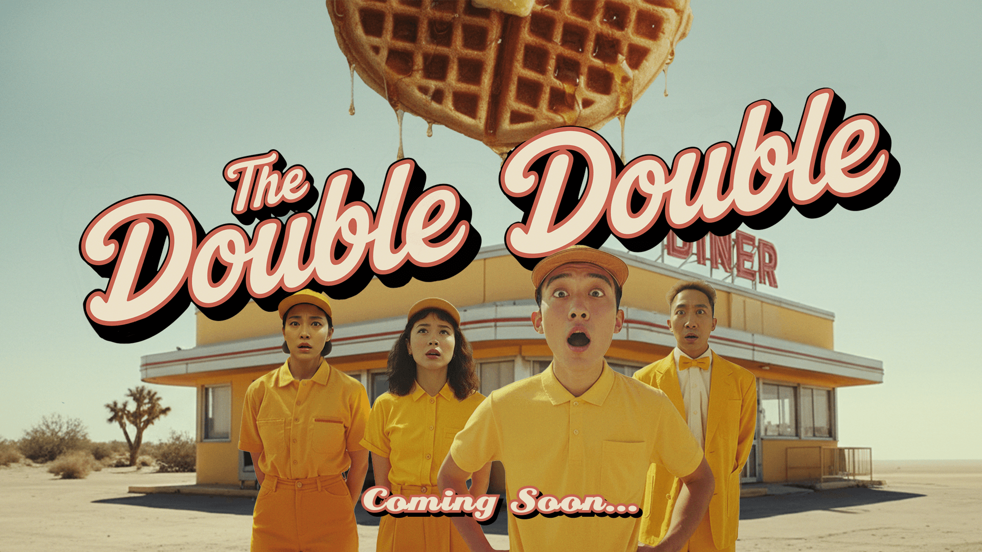 The Double Double is a wild, absurdist comedy where diner booths double as cosmic battlegrounds. Four mismatched friends—stand-ins for an unstable star system—can’t drift farther than sixty “waffle units” apart without triggering galactic collapse. When egos clash and someone crosses the line, syrup-drenched meteors, cosmic dogs, and the laws of gravity itself unravel in spectacular chaos.
